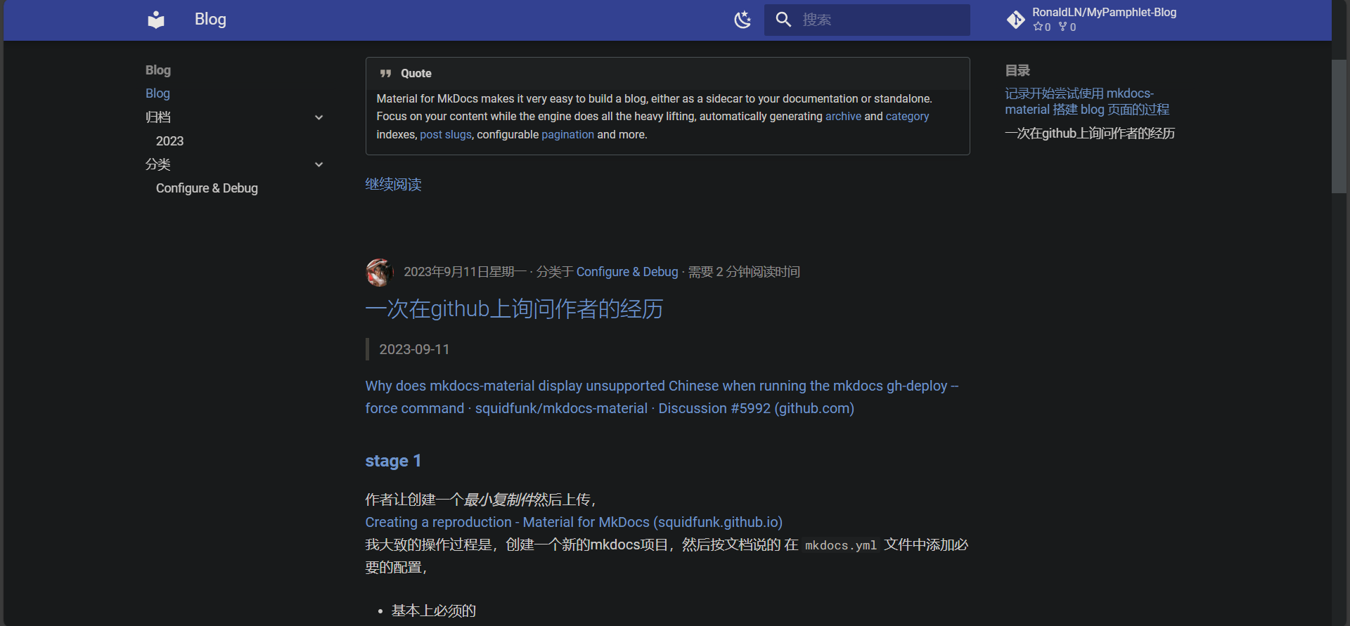 记录开始尝试使用 mkdocs-material 搭建 blog 页面的过程¶