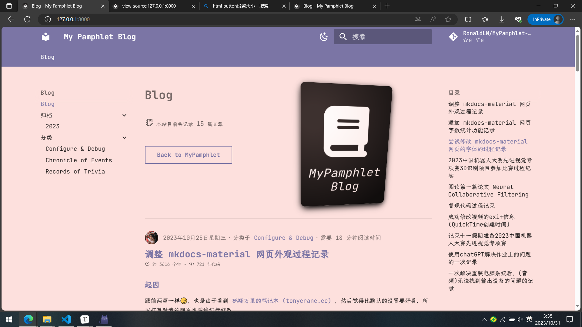 经过不断调整,适应我的网页,最后 index.md 设置成了